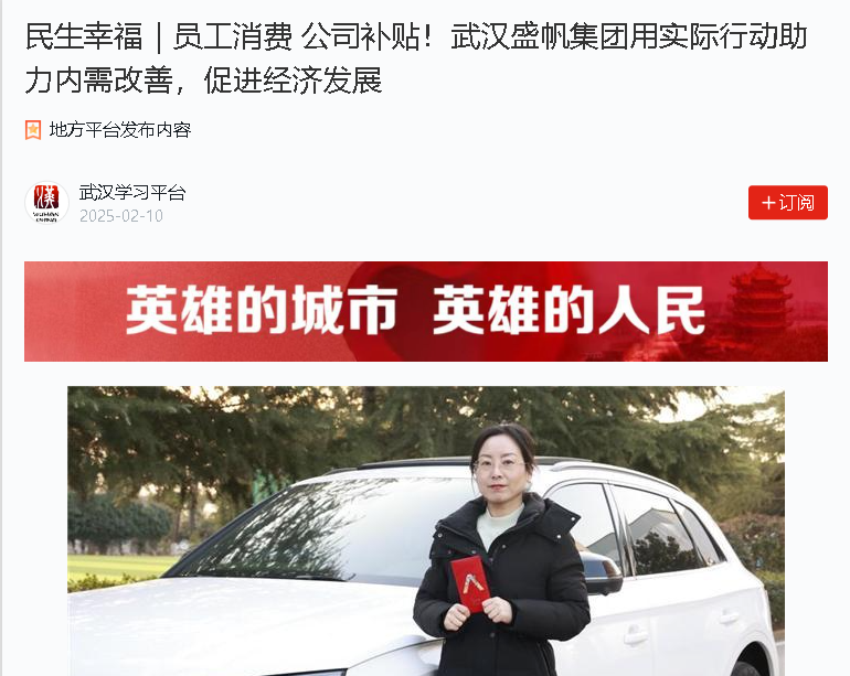 前脚刚提到新车,公司发放的10000元消费补贴就到账了,这让满冠体育官方网站登录入口集团制造中心的员工欧阳艳很是激动。据了解,欧阳艳享受的···