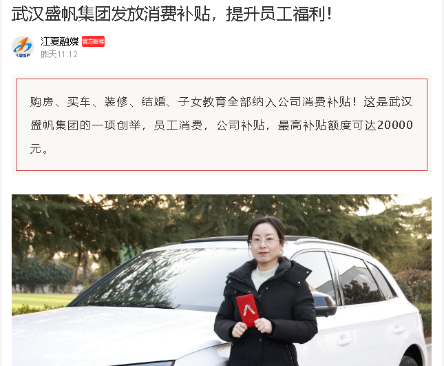 购房、买车、装修、结婚、子女教育全部纳入公司消费补贴!你没有听错,在武汉满冠体育官方网站登录入口集团,员工消费,公司补贴,最高补贴额度可达···